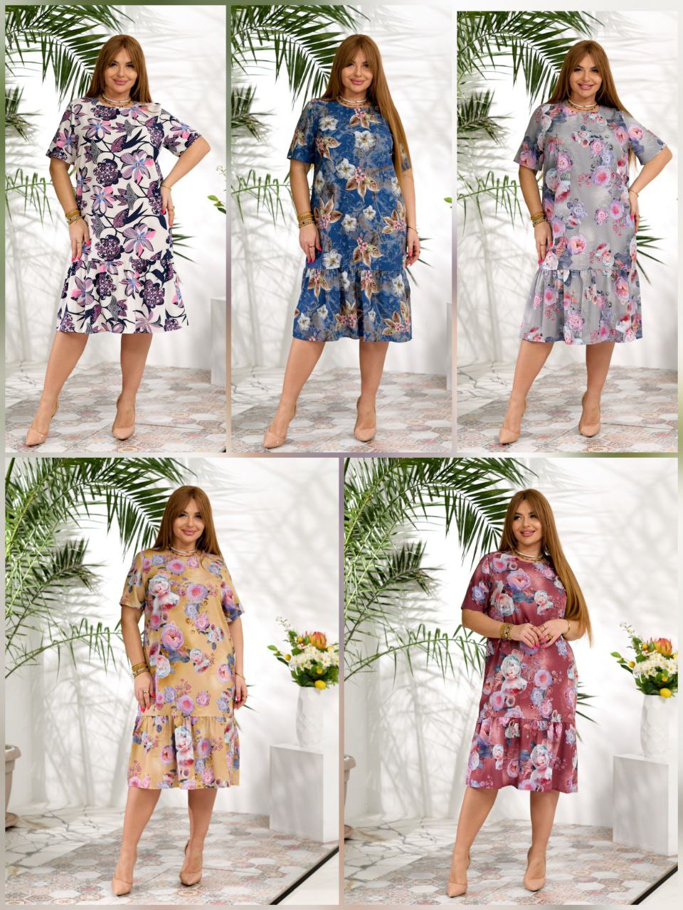 Молочний квітковий (синій), синій квітковий, ліловий квітковий, сірий квітковий, молочний квітковий (фіолетовий), карамельний квітковий, бежевий квітковий, бордовий квітковий